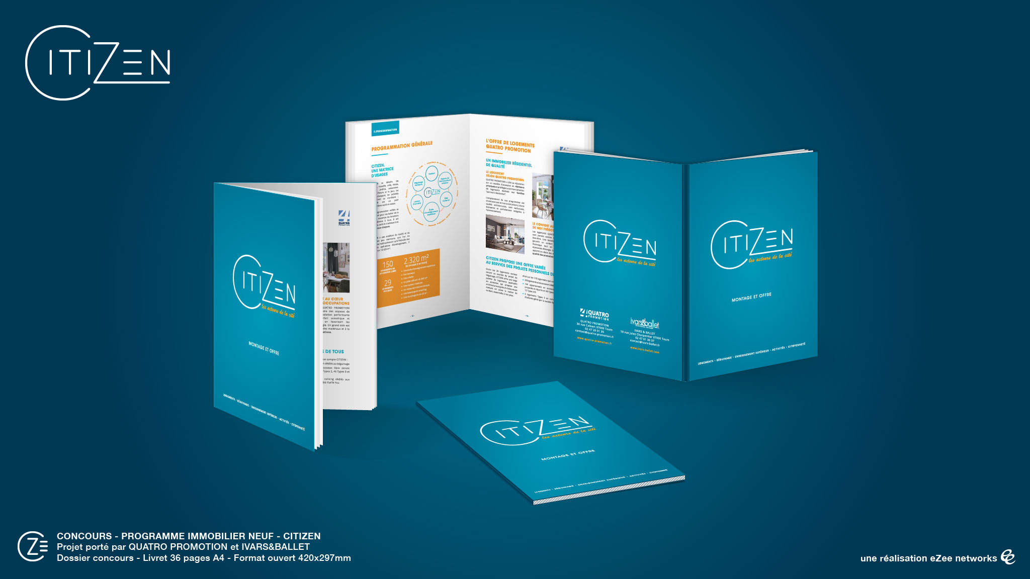Dans le cadre d’un concours immobilier neuf, le promoteur QUATRO PROMOTION nous a sollicités pour réaliser les éléments print et digitaux nécessaires à la présentation d’un dossier de candidature.